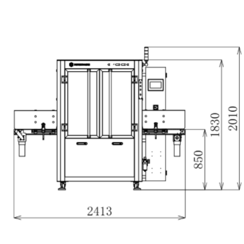 There is a quick release system for the POM star (plastic star) and we use quickly replaceable connectors for all sensors present, which keeps downtime to a minimum. The machine is supplied with an infeed and outfeed conveyor belt of 60cm each (total length per conveyor belt is 1 meter).