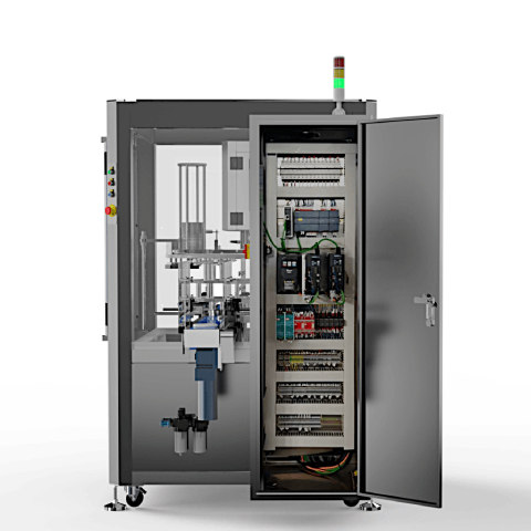 The Automatic Heat Sealer for Composite Cans uses 4.0 technology and Supervisory Control and Data Acquisition (SCADA) with Linux software.